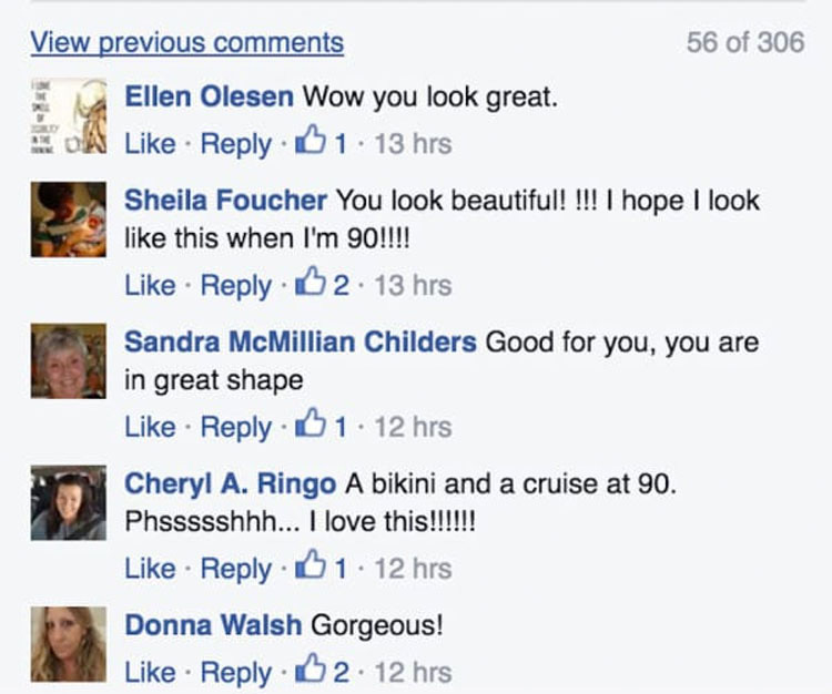 Una vez que la foto de Irene fue publicada en Facebook, al instante se volvió viral. Miles de personas de todo el mundo están siendo inspirados por Irene. ¡Nunca se es demasiado mayor para usar un bikini!