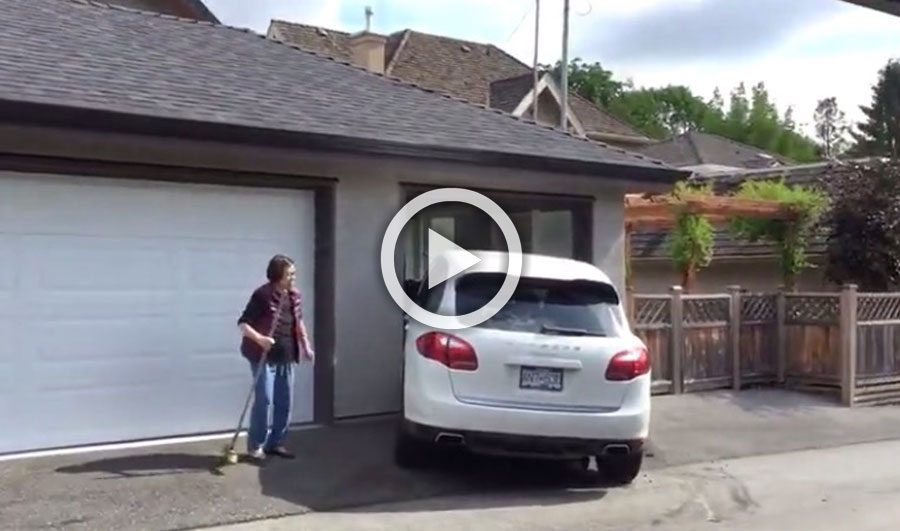 El conductor de este Porsche Cayenne era un adolescente sin licencia que había entrado en pánico después de haber chocado con un vehículo estacionado. Había tomado «prestado» el vehículo de su madre y no quería que lo detuvieran. Tenía que meterlo «como fuera» en el garaje…