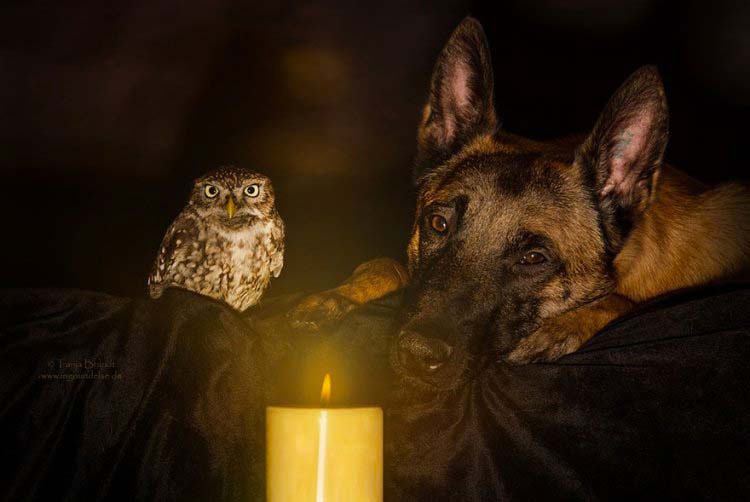 La fotógrafa alemana de animales Tanja Brandt ha capturado la belleza de un amor y amistad únicos que existen entre Ingo, su perro pastor, y Else, un pequeño búho. Ingo y Else se han unido de tal manera que parecen preferir la compañía del otro por encima de las demás.