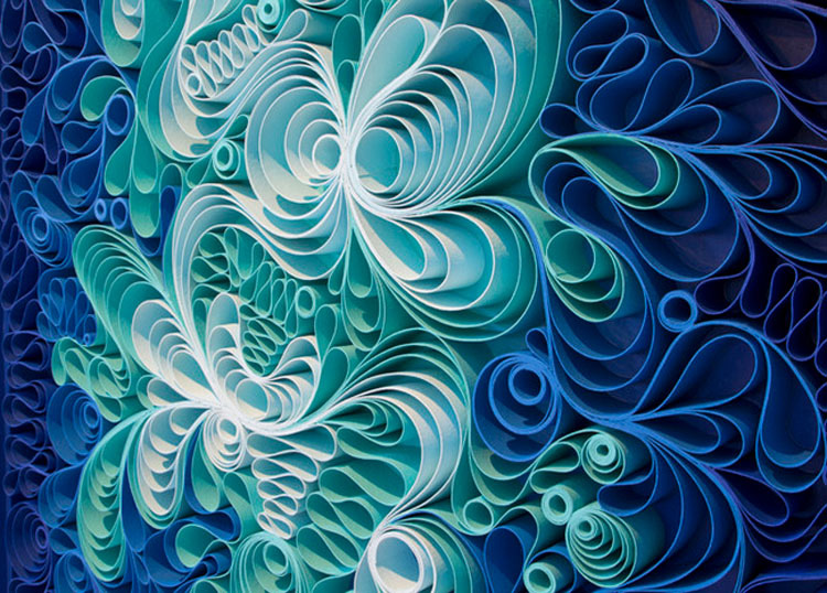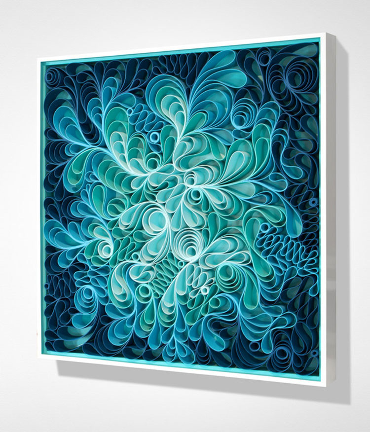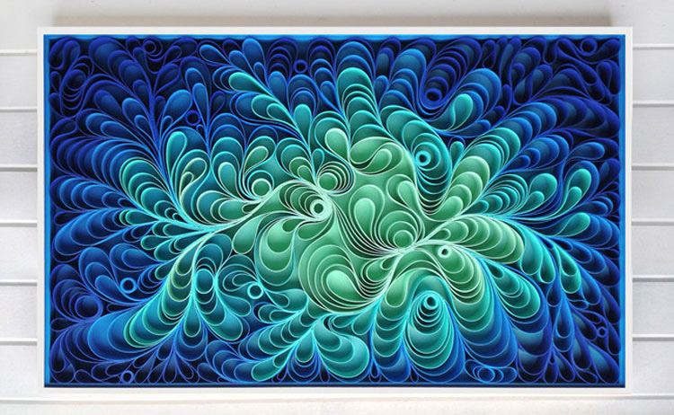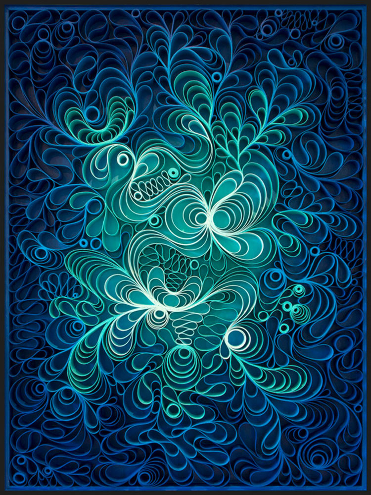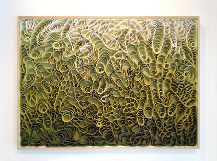 … como formas orgánicas de paisajes oceánicos. Su obra se situa entre la pintura y la escultura.