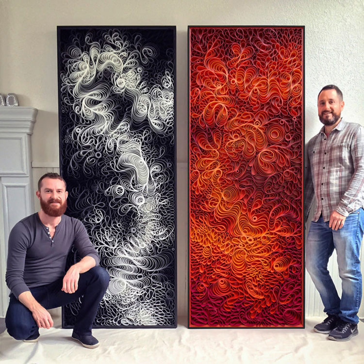 El equipo de artistas se refiere a sí mismos como Stallman. Stephen Stum y Jason Hallman, son compañeros en la vida y la creación de su arte, creando los remolinos de las piezas abstractas que puedes ver aquí. Utilizan lienzos y pintura… pero no de la manera que todos esperan.