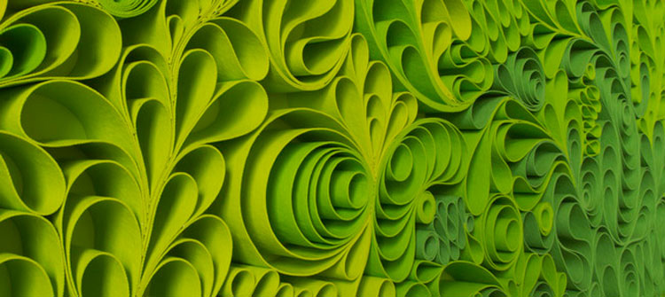 Mediante el uso de diferentes colores, las superficies de lienzo pueden reflejarse entre sí, creando un efecto brillante que cambia dependiendo del ángulo desde dónde se observa.