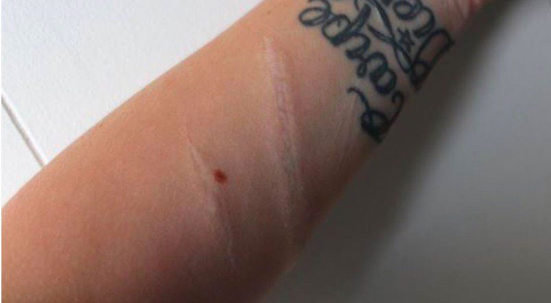Cuando voy a las tiendas lo miran al entrar, cuando conozco gente nueva lo ven, cuando me hacen preguntas mis potenciales nuevos jefes lo ven, mi hijo de 4 años de edad lo ve, mi sobrina me pregunta por qué mi brazo es raro… ahora voy por la vida como alguien que es feliz de tener 24 años y sólo desearía poder decirme a mi misma cuando tenía 13 años de edad y sostenía una maquinilla de afeitar que las cosas mejorarán…
