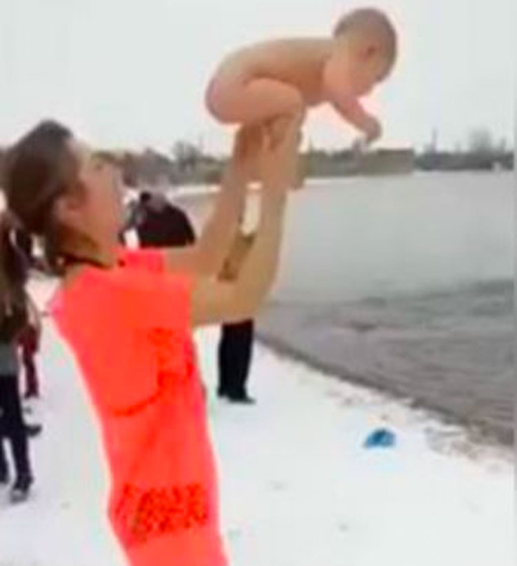 .. Mientras que otros afirman que es sólo una mala forma de crianza. Mira como ella balancea a su niña en torno a temperaturas de congelación y se mete con ella en el lago helado …