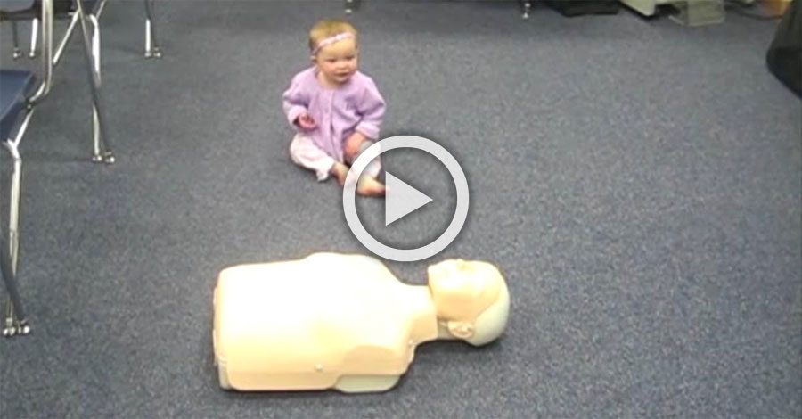 Resulta que esta «pequeña esponja» había absorbido todo el conocimiento que su madre da a sus estudiantes de RCP, y aunque este bebé necesita un poquito más de entrenamiento antes de que se pueda confiar en ella y sea calificada, una cosa es definitivamente cierta: ella parece saber exactamente lo que está tratando de hacer.