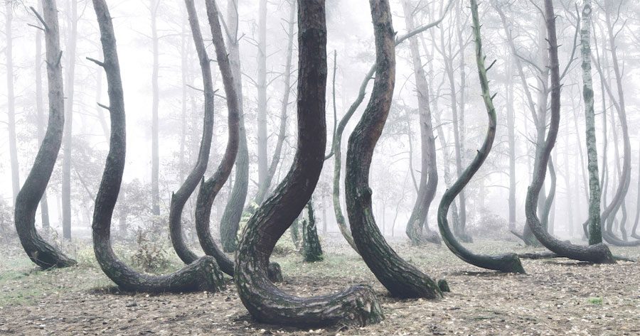 Apodado el «Bosque Torcido», tiene un extraño grupo de pinos doblados, que convierten la zona en uno de los lugares más intrigantes de Europa Central. Situado a las afueras de Nowe Czarnowo, en la Pomerania Occidental, Polonia, los árboles fueron plantados entre 1930 y 1940, y misteriosamente fueron «doblados» o «torcidos», diez años más tarde. ¿Por qué? Nadie lo sabe a ciencia cierta.