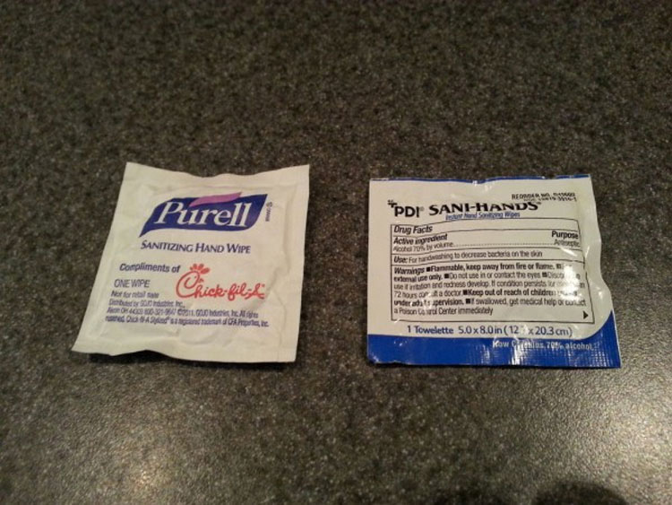 La desinfección es muy importante para la supervivencia. Limpiar una herida con una de estas pequeñas toallitas, y luego finalizar con el elemento de abajo.
