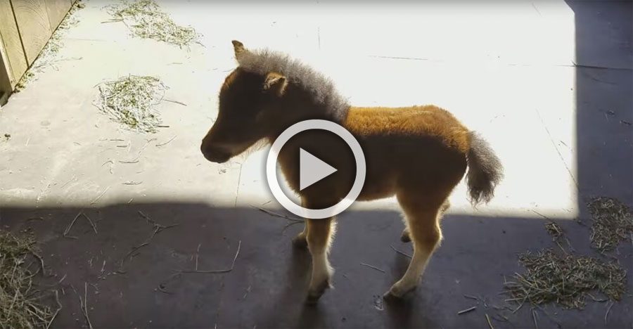 Bueno, tal vez no sería tan malo si te dabas la vuelta y vieras que estabas siendo seguido por… ¡este adorable caballo en miniatura! Esa es la situación que se encontró Sterling Bartow cuando estaba caminando a través de un granero. Se dio la vuelta y se dio cuenta de que su acosador era este bonito caballo bebé. ¡Ahora espera a ver lo pequeño que es en comparación con el perro!
