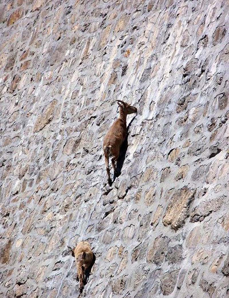 Estas cabras son cabras alpinas, y les encanta pastar las hierbas que se esconden entre las piedras de la presa.