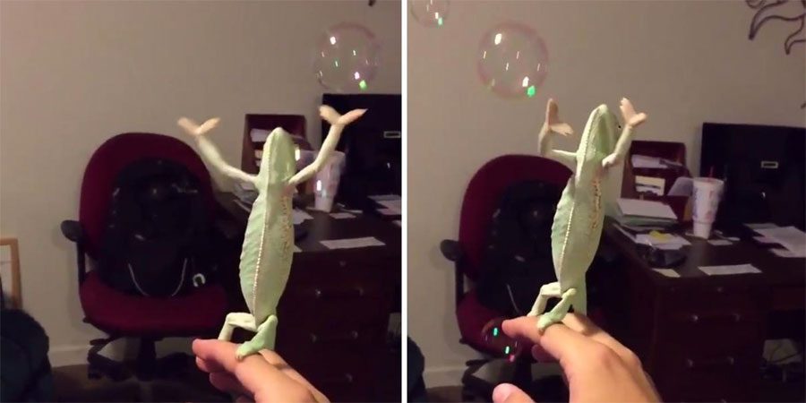 Laura es como cualquier otro camaleón. Excepto, cuando está deprimida, en lugar de volverse azul – se pone a estallar pompas en su lugar.
