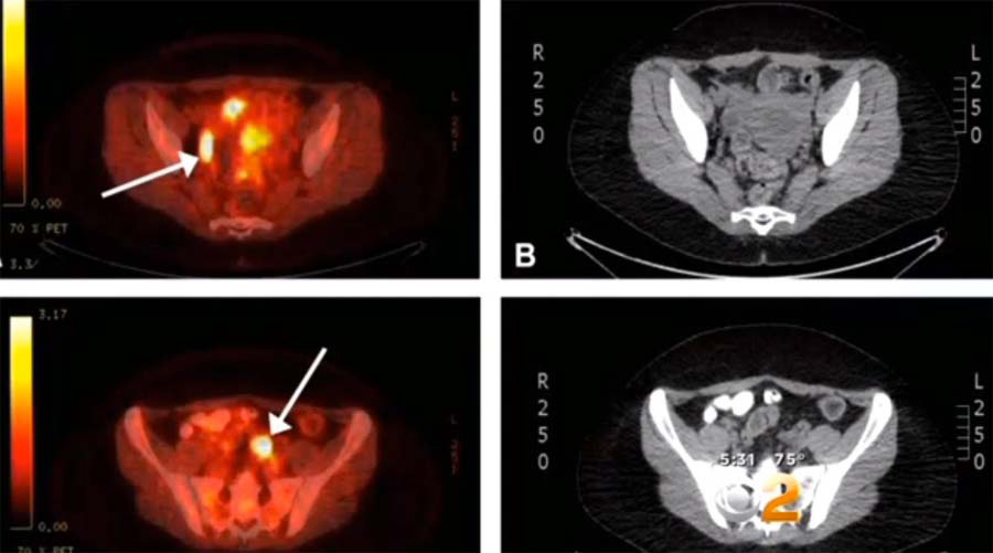 Una madre de cuatro hijos de California recibió el resultado de un escáner PET antes de programarla para la extirpación de sus órganos reproductivos, pues parecía que su cáncer de cuello uterino se había propagado hasta la pelvis.
