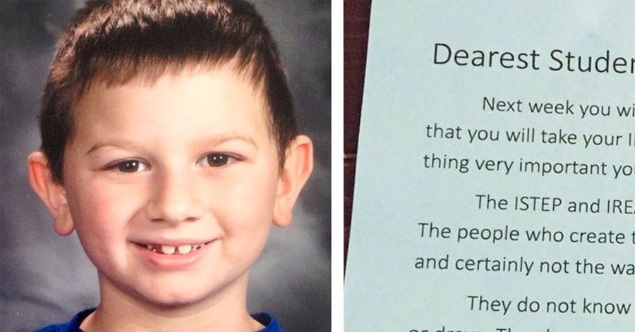 Él escribió una hermosa carta, detallando las formas en que estas pruebas, algo controvertidas, no deberían empezar a definir un estudiante. Si el estudiante tiene pasión por la música, el arte o el deporte, una prueba de matemáticas de elección múltiple simplemente no puede saber estas cosas. Una prueba no puede saber lo maravillosa que es una persona. Asimismo, tampoco puede decir lo inteligente que eres. Sólo lo bien que has aprendido a realizar esta prueba en particular.