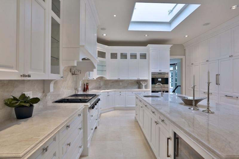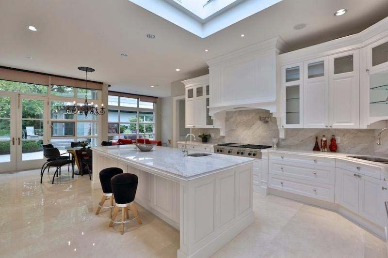 Por supuesto, también hay una preciosa cocina, completa con dos lavabos, una cocina de gas doble, pared posterior de mármol, encimeras de granito …