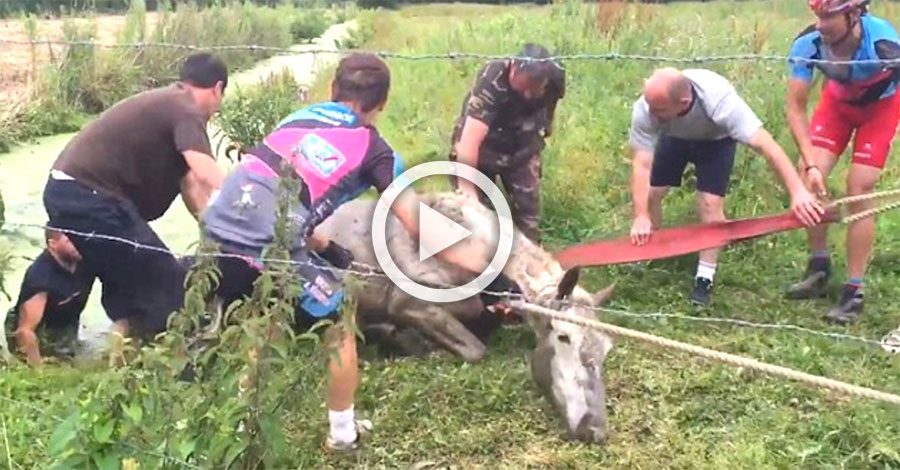 Afortunadamente, unos ciclistas vieron el problema, y al instante idearon una solución. No fue agradable, pero rodearon al caballo con todas las cuertas que pudieron encontrar, y utilizando la fuerza de todos se detuvieron y tiraron hasta que el pobre animal quedó finalmente libre. ¡Se debe haber sentido tan bien de tener las patas sobre la tierra seca de nuevo!