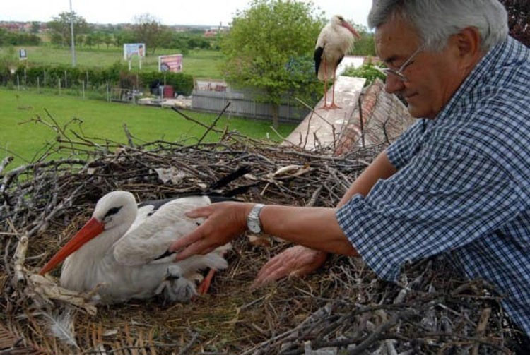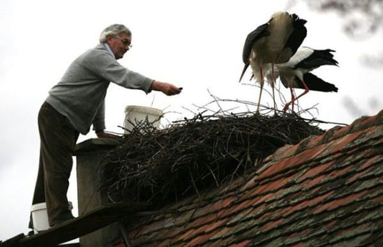 El techo sobre el que se sienta el nido pertenece a un hombre llamado Stjepan Vokic, que se ha convertido en el guardián de la pareja de cigüeñas y siempre se asegura de que tengan alimento y refugio.