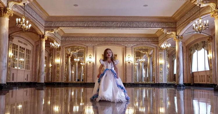 Vestida con un precioso y gran vestido de princesa, parece como algo salido de una película, y Claire canta las letra sin problema. ¡Está claro que ella sabe la letra de memoria! No son muchos que a los 4 años de edad pueden decir que han intervenido en un impresionante vídeo musical como éste. Con un equipo para realizar el vídeo (sus padres), un artista del maquillaje y peinado y un lugar que parece un castillo real para llevar a cabo el rodaje, ¡Claire derrite corazones y cautiva a Internet una vez más!