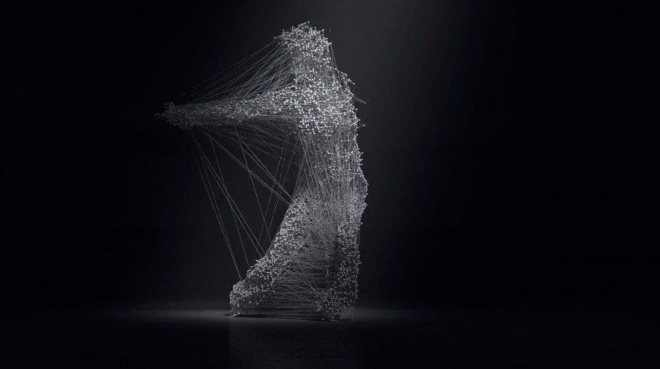 Para una ordenador sólo somos formas sin rostro hechas de puntos, líneas y nodos. Este proyecto experimental realizado por Maria Takeuchi utiliza Microsoft Kinect para capturar los movimientos de un bailarín, convertirlos a datos y luego reconstruir esos movimientos en un cuerpo hecho de puntos, líneas y nodos, que baila de forma impresionante.