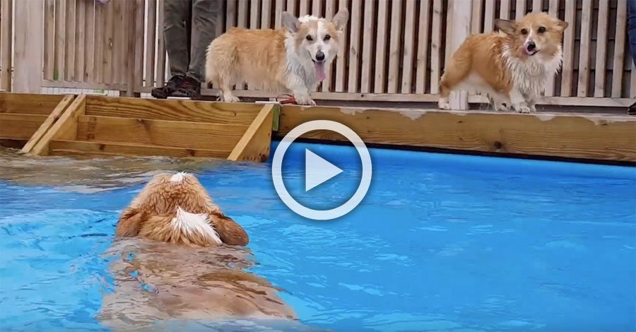 2 cachorros corgi ven a su amigo en la piscina. Ahora mira cuando hacen ESTO. ¡Adorables!