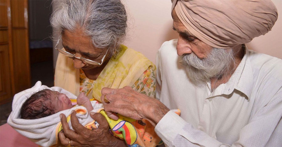Una mujer india de 72 años y su esposo de 79 años de edad, se convirtieron en padres primerizos, 46 años después de haberse casado. Daljinder Kaur dio a luz a un bebé el pasado mes de abril de 2016, después de dos años de tratamiento de fecundación in vitro.