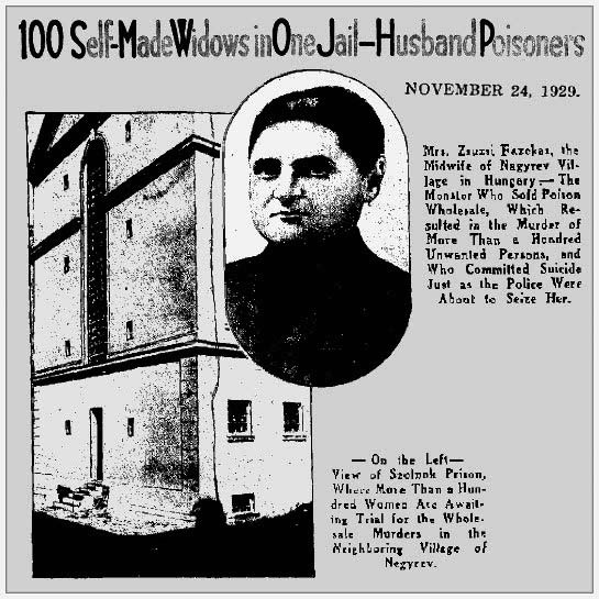 10. Los ángeles de Nagyrév: Un grupo de mujeres dirigido por la comadrona Júlia Fazekas en un pueblo húngaro, entre 1914 y 1929, envenenaron a cerca de 300 personas. Fazekas incluso animaba a las mujeres del grupo a deshacerse de los miembros de sus familias, ya que, como ella decía, «¿Para qué pasar el día con ellos?»