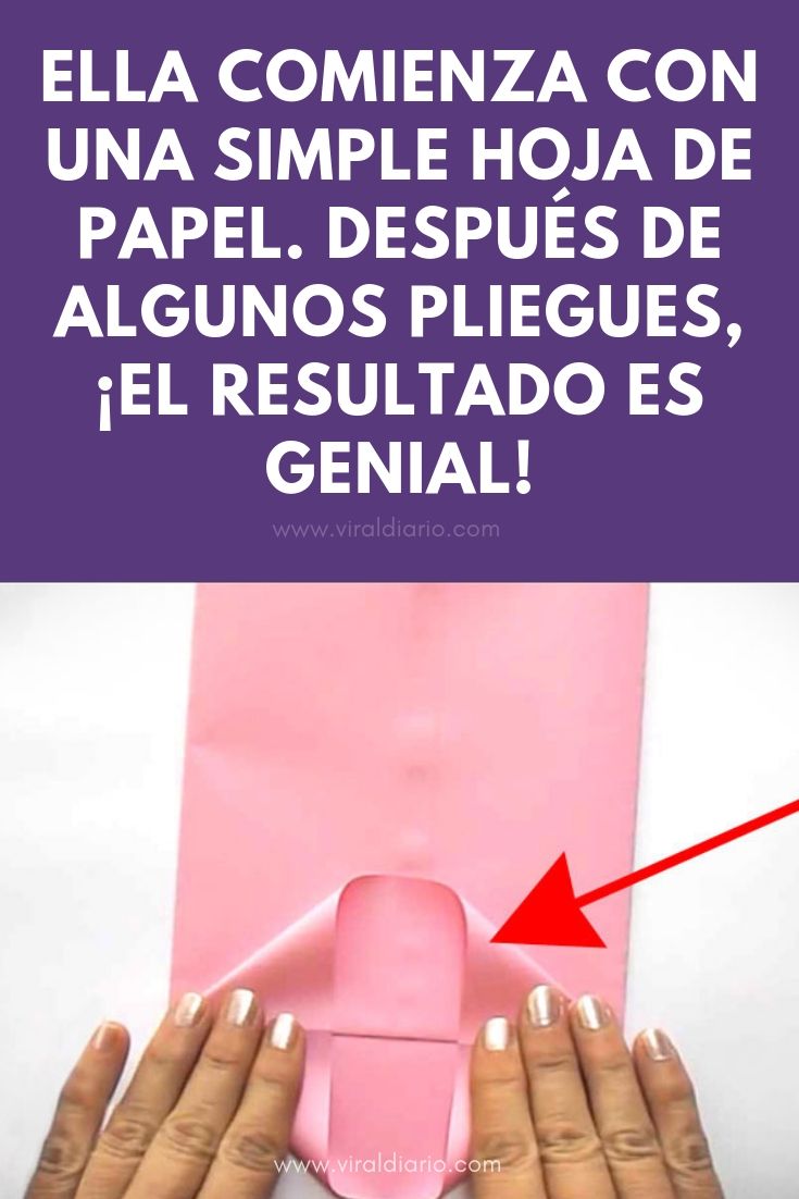Ella comienza con una simple hoja de papel. Después de algunos pliegues, ¡el resultado es GENIAL!