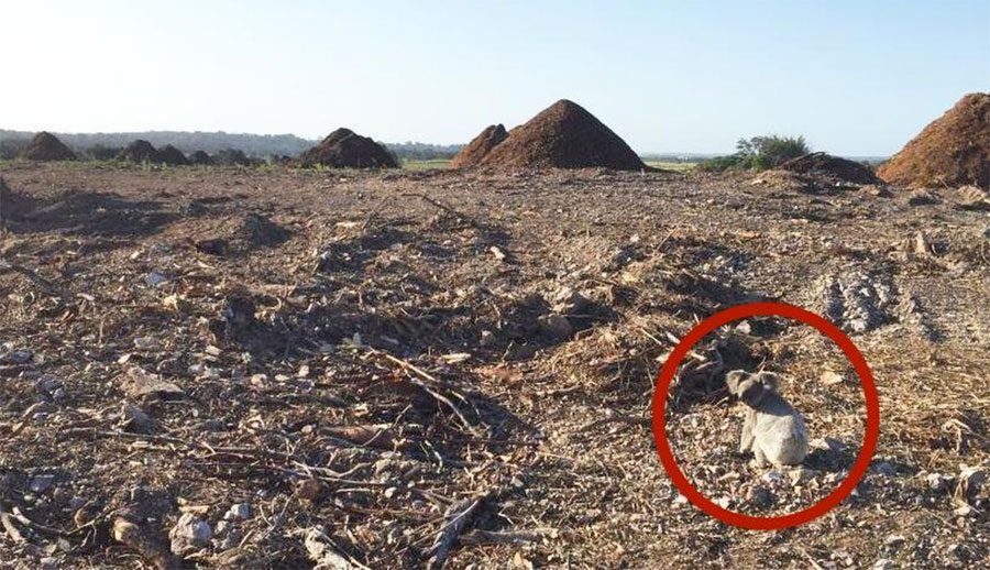 La gran franja de tierra fue despejada para hacer espacio para una promoción de viviendas en Queensland, Australia, causando la muerte o el desplazamiento de un sinnúmero de animales en el proceso. No mucho tiempo después, un voluntario del grupo de rescate de animales WildCare Australia Inc. encontró a una pequeña koala claramente confundida contemplando las ruinas del lugar en el que vivía.