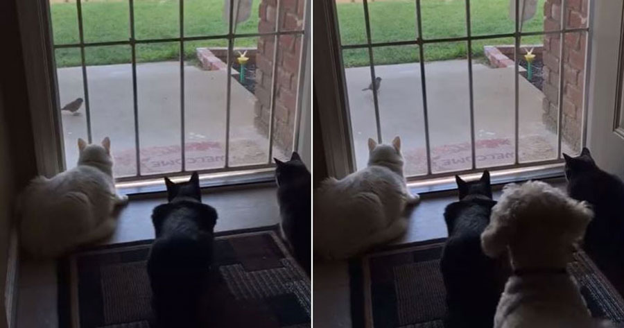 Pero sin embargo, nunca habíamos visto un vídeo en el que en tan sólo un minuto comprobásemos otra de sus diferencias de forma tan notable. Observa la escena… varios gatos no le quitan el ojo a un pájaro, lo siguen atento desde una ventana, ni se mueven, están concentradísimos… tanto, que de repente llega un perro juguetón y en un instante… ¡Todo explota! Pero mejor que lo veas tú mismo.