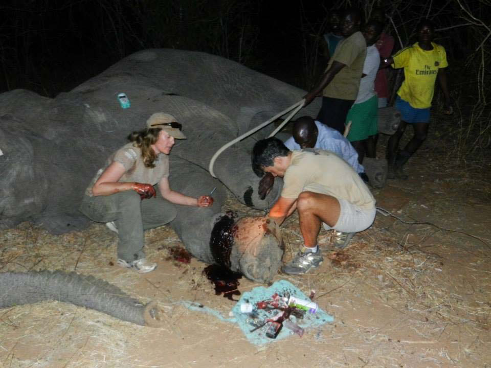 El elefante tenía un agujero de bala de AK-47 en la mejilla y en la trompa, probablemente víctima del comercio salvaje del marfil.