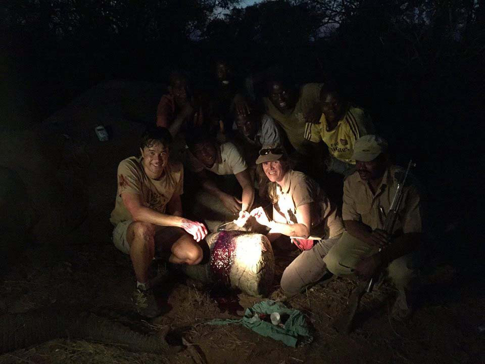 A continuación, los veterinarios decidieron hacer un último intento de quitar la trampa bajo los faros del Land Rover y la modesta iluminación de teléfonos móviles.