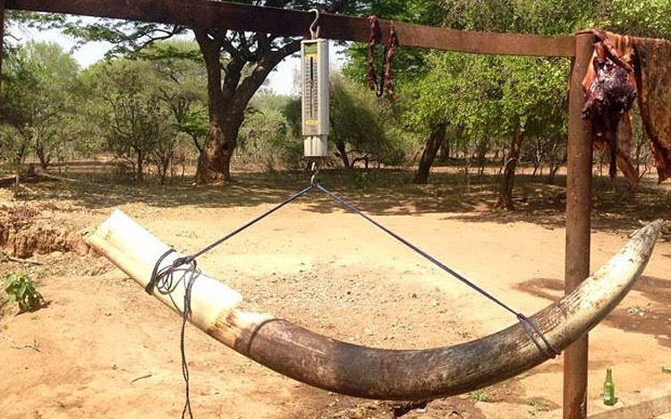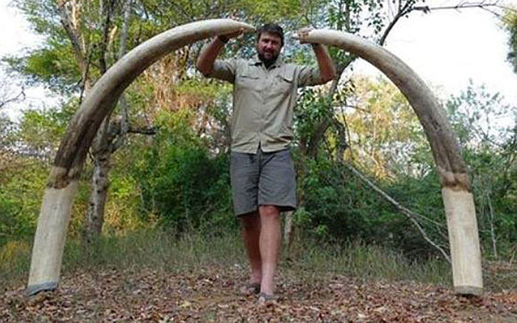 Sus colmillos, que tocan el suelo en una fotografía tomada momentos después de los disparos, confirmaron su carácter excepcional, se estima que cada uno de ellos pesarían alrededor de 55 kilos.