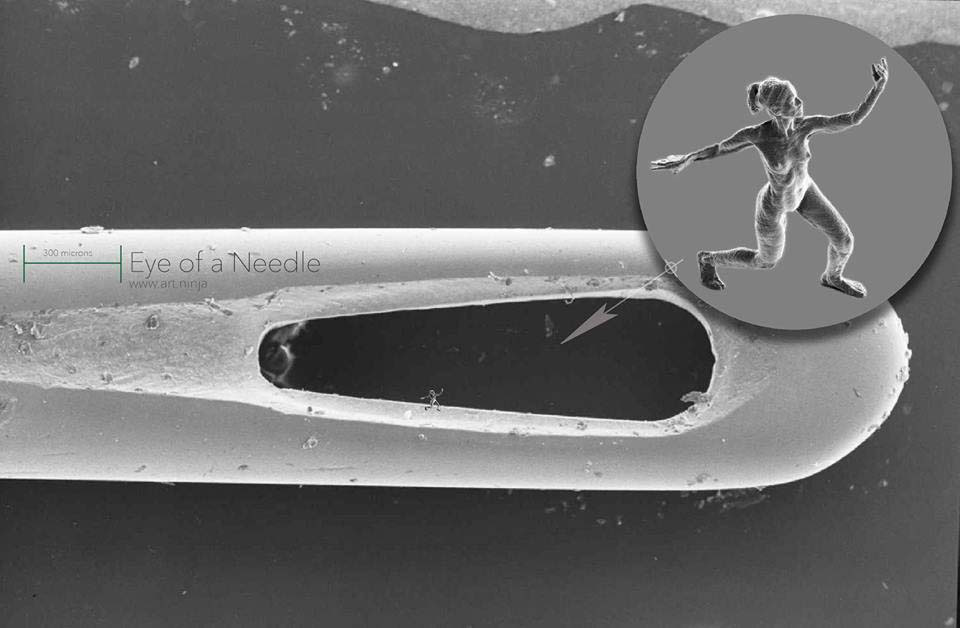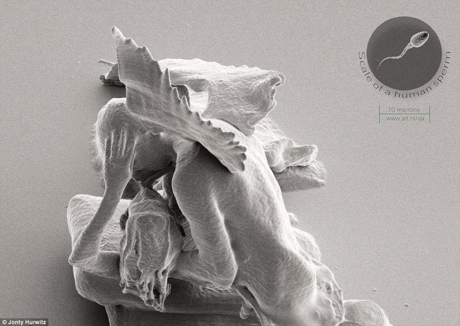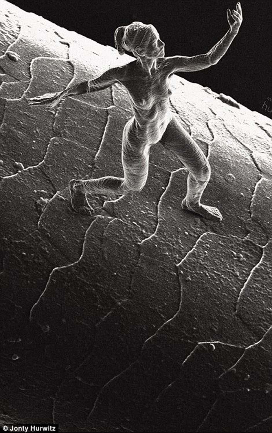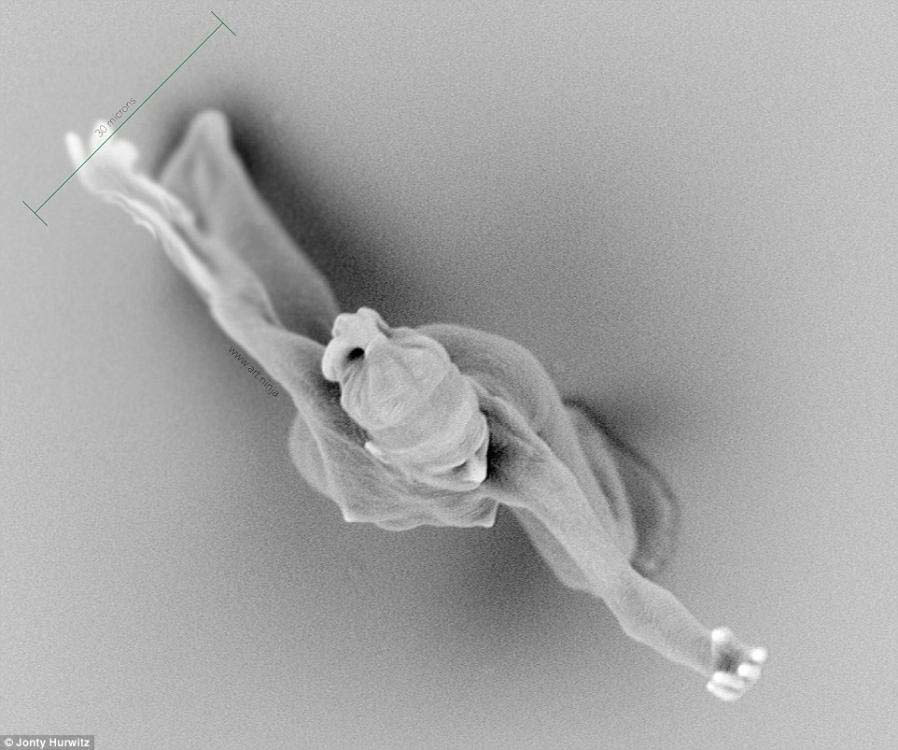 Hay una delgada línea entre el arte y la ciencia y a Jonty Hurwitz le gusta cruzar esa línea. Con la carrera de ingeniería en su haber, Hurwitz ha encontrado una manera de crear la escultura más pequeña con forma humana que el mundo haya visto jamás. Su prototipo ha sido impreso en 3D a escala nanométrica. Es tan pequeña que situada en el ojo de una de aguja necesitaría un microscopio para distinguir lo que es.