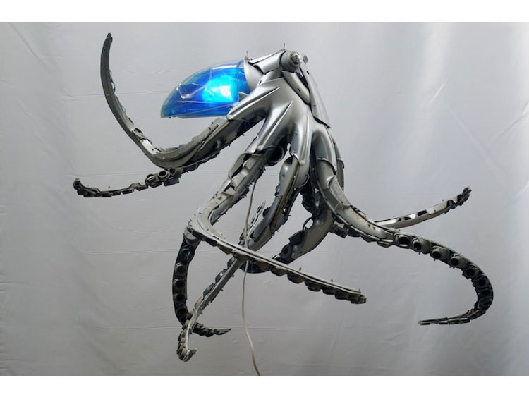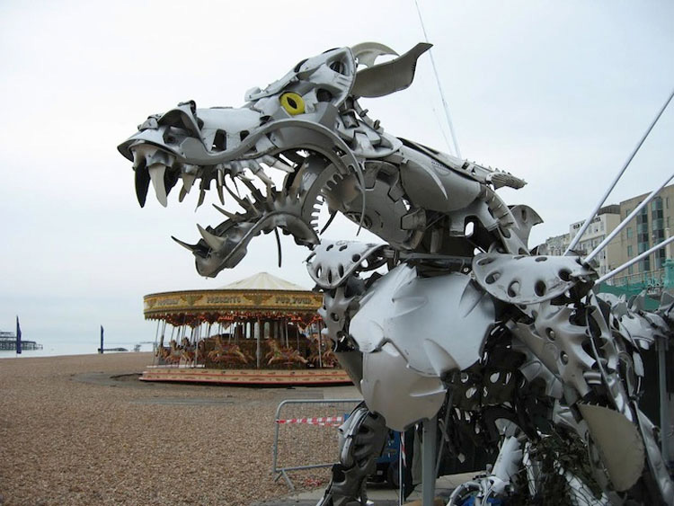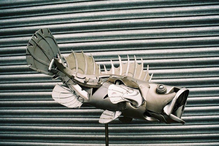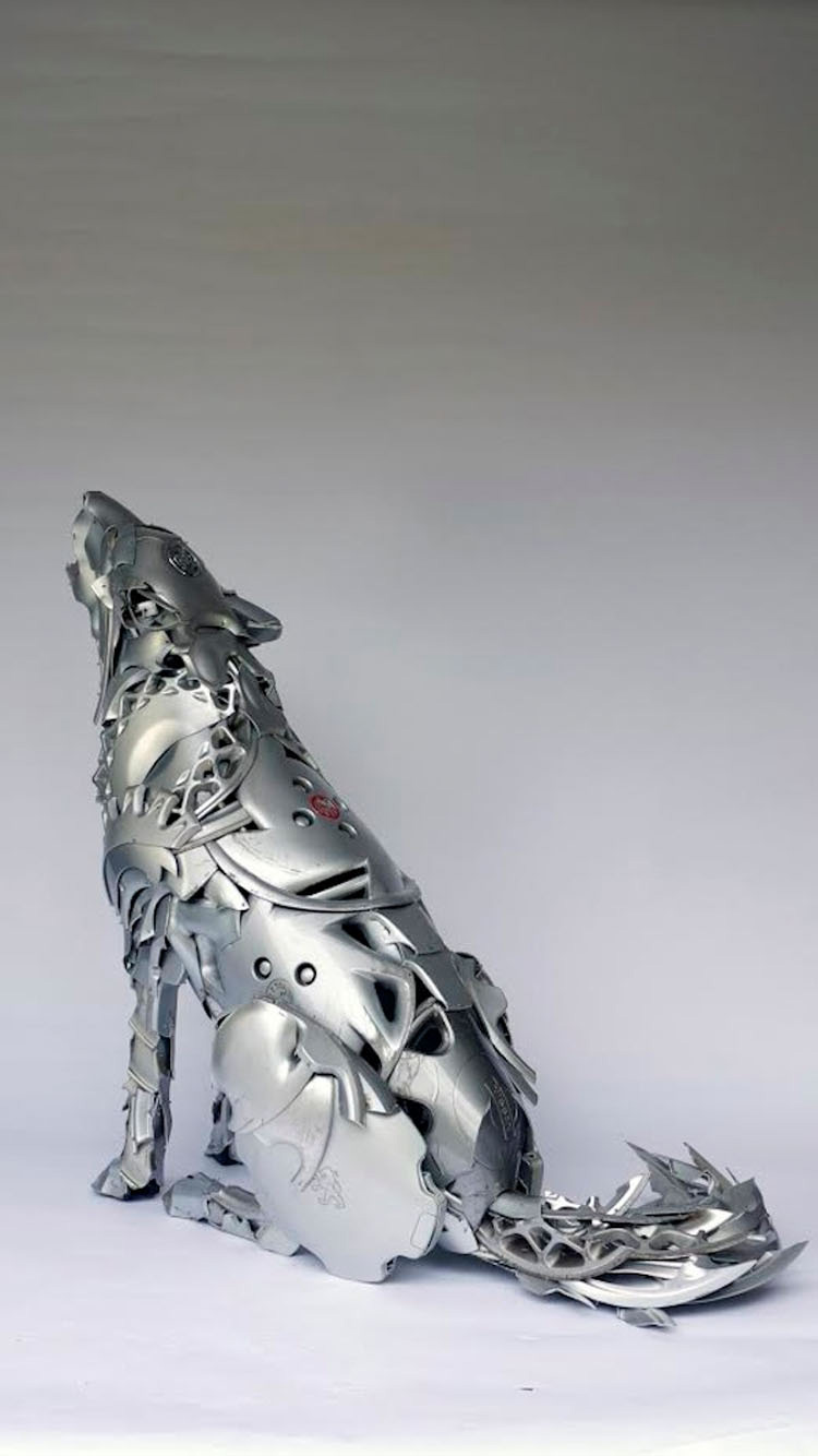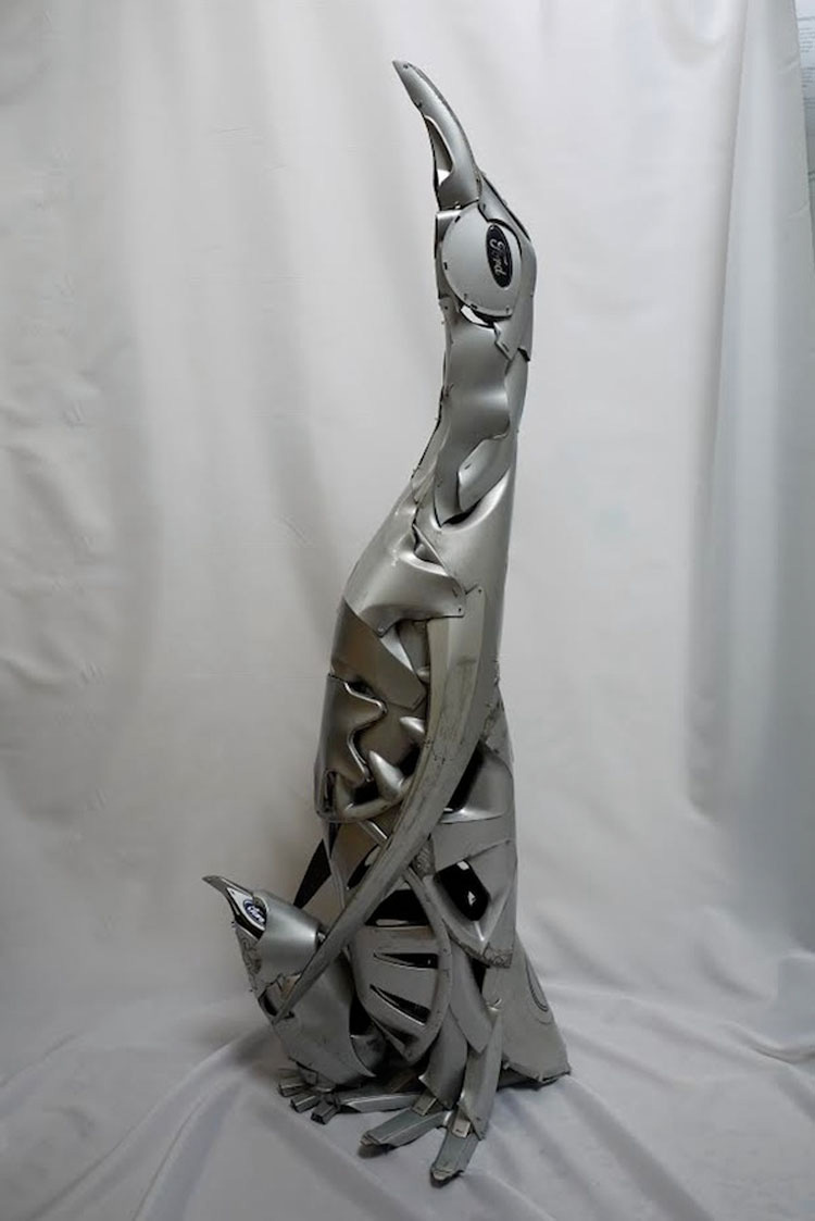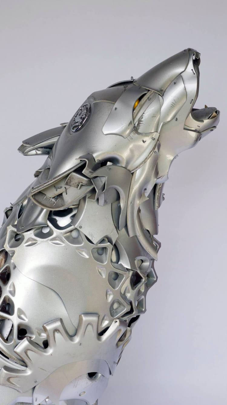 Durante más de doce años, el artista residente en Brighton (Reino Unido), Ptomely ELRINGTON ha transformando tapacubos desechados en asombrosas esculturas de animales. Mientras que la mayoría de nosotros vemos los tapacubos como un accesorio para el coche, ELRINGTON los ve como arte. A partir de estos trozos de metal crea todo tipo de esculturas de animales, desde peces y aves, hasta tiburones y dragones. «Me gusta trabajar con materiales abandonados para mostrar que lo que es basura para una persona puede ser un tesoro para otra«, dijo a The Daily Mail. Incluso los tapacubos que tienen logotipos de marcas como BMW, Mercedes, Ford y Volvo a menudo encuentran una nueva vida en su obra. Echa un vistazo a los ojos de las aves.