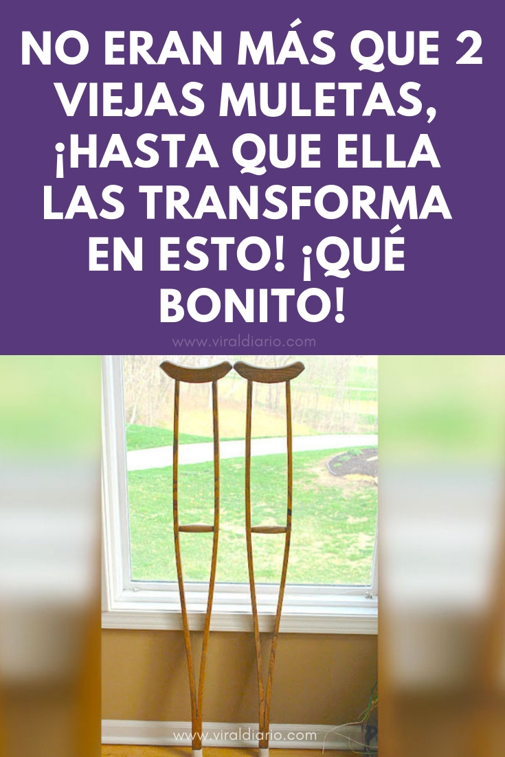 Cuando terminó, sus viejas muletas se habían transformado en un mueble muy llamativo.