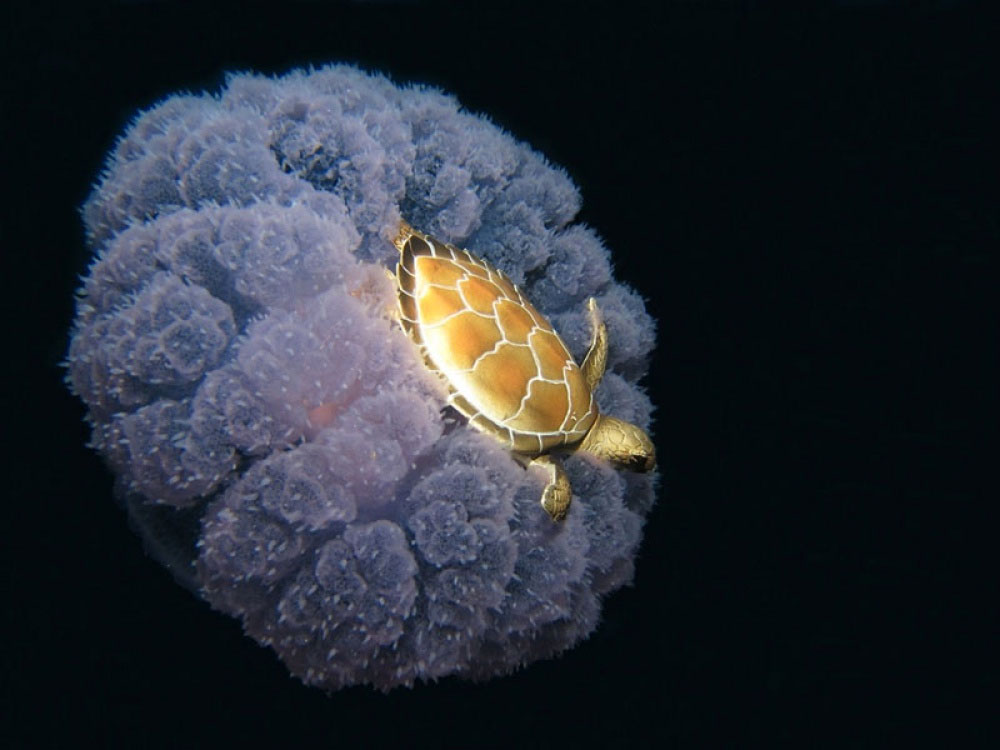 1. Tortuga montada en una medusa.