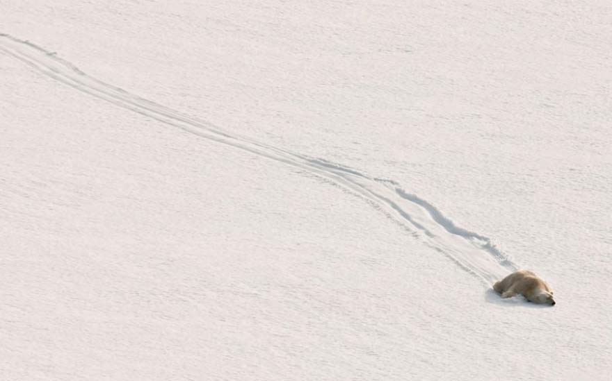 10. Un oso polar deslizándose por una colina.