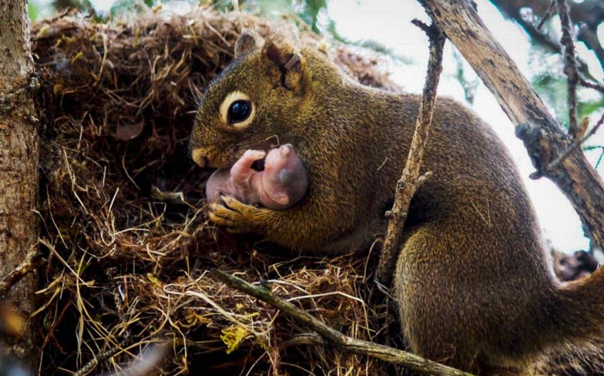 11. Una madre ardilla y su bebé.