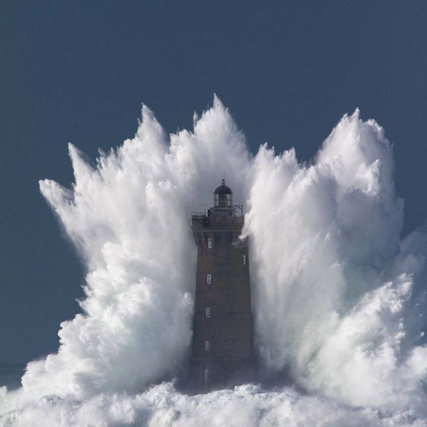 9. Faro tragado por una ola, Islas Feroe.
