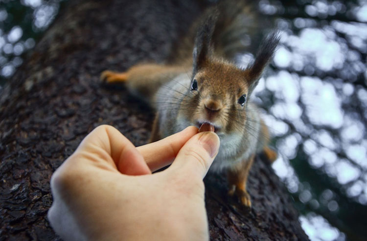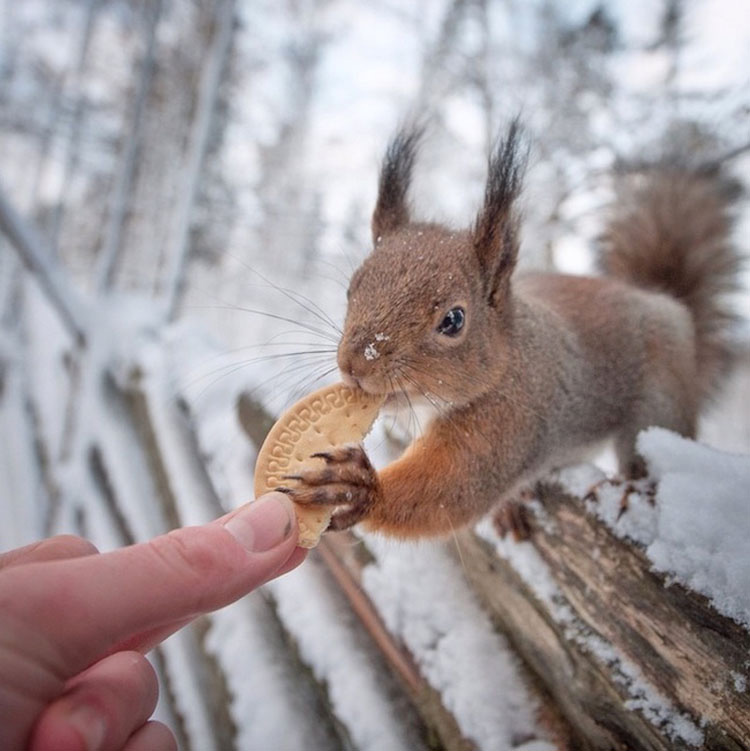 Konsta Punkka es un fotógrafo finlandés de 21 años de edad, que tiene un don extraordinario con los animales, como se puede ver en sus estrechas interacciones con la vida silvestre que él captura con su cámara. El autoproclamado «susurrador de ardillas» utiliza su iPhone y una cámara DSLR para capturar instantáneas de encantadoras criaturas del bosque desde una increíblemente corta distancia, a menudo dentro del alcance del brazo. Pájaros, ardillas, zorros y otros animales se acercan a comer la comida directamente de su mano, lo que hace que las fotografías se conviertan en íntimos retratos con una perspectiva única.