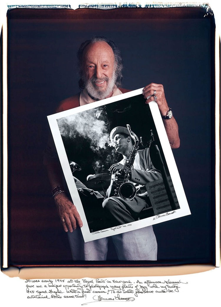 «Fue a principios de 1948 en el Royal Roost en Nueva York. Una tarde, durante un ensayo, tuve la oportunidad única de fotografiar a muchos gigantes del jazz con mi Speed Graphic 4×5«.