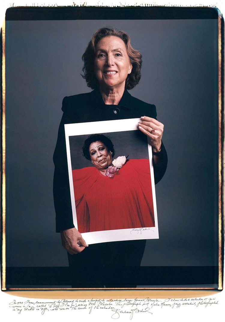 «En 1977 fui elegida por Polaroid para crear un proyecto para introducir el gran formato Polacolor. Decidí hacer un calendario de grandes mujeres del jazz llamado: ‘A Song I Can See’, usando una Polacolor de 8×10. Esta fotografía es de Helen Humes, cantante de jazz, fotografiada en mi estudio de Nueva York«.