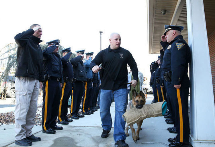 Policías saludan a un querido miembro de la fuerza K-9. El perro tiene una enfermedad terminal, y va camino de un hospital de animales para ser sacrificado.
