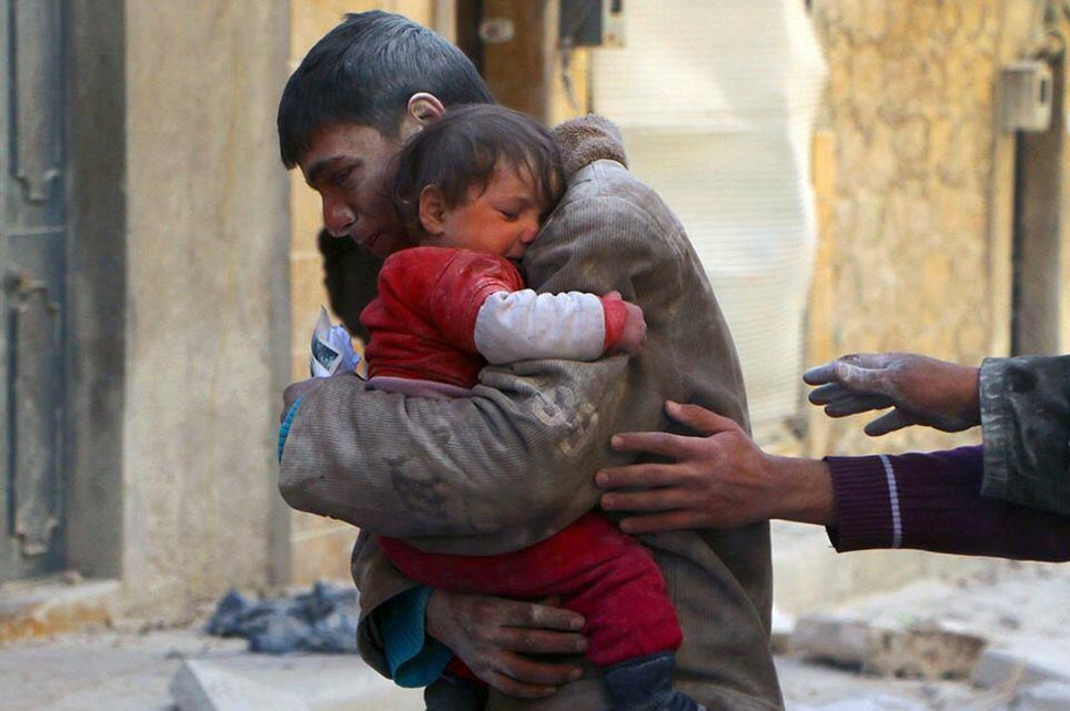 #18. Un niño rescata a su hermana de debajo de los escombros de su casa en Siria.