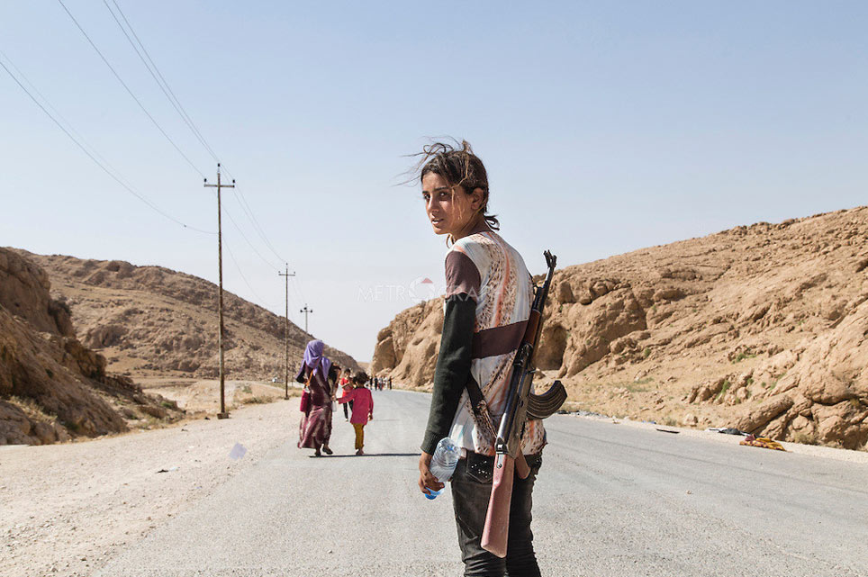 #26. Chica Yezidi lleva un rifle de asalto para proteger a su familia del ISIS.