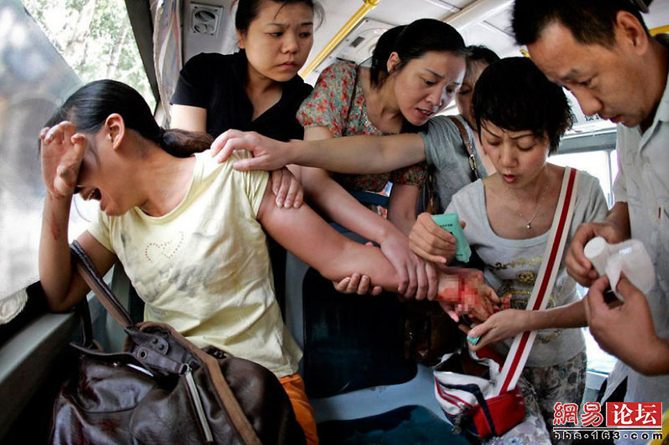 Una mujer china intenta suicidarse en un autobús público. Tuvo la suerte de que los pasajeros que iban a su lado lo vieron y lo impidieron. La policia trasladó a la mujer hasta un hospital cercano donde se recuperó.