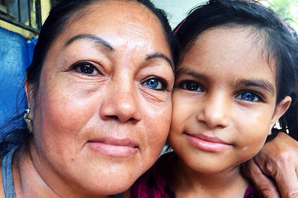 El color de los ojos es hereditario. Esta mujer y su hija son el ejemplo perfecto. Tienen un ojo marrón y el otro azul. El término científico que describe esta singularidad se llama heterocromía.