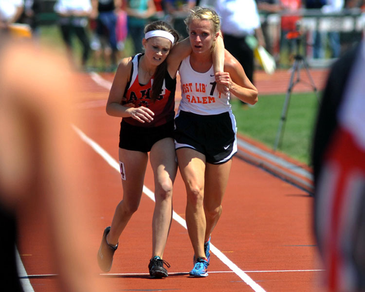 5. Cuando Meghan Vogel llevó a su competidora Arden McMath hasta la línea de meta, cuando esta se había desplomado durante la carrera