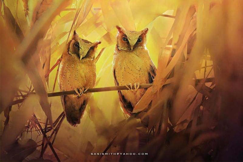 El fotógrafo Sasi Smith quiso responder a esta pregunta a través de su obra. Sasi vive en Tailandia y quería mostrar cómo viven los búhos en la naturaleza. Su tarea era desalentadora – los búhos son conocidos por ser muy difíciles de fotografiar, ya que son nocturnos y tienen un talento especial para mimetizarse con el entorno. Sin embargo, Sasi estaba decidido a capturar a estos bellos animales con su cámara.