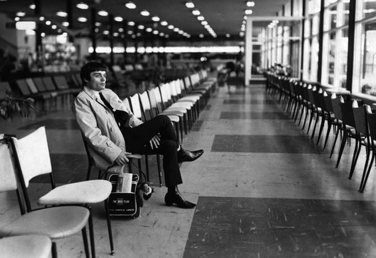 Jimmie Nicol, el casi-Beatle, espera un avión, junio 1964