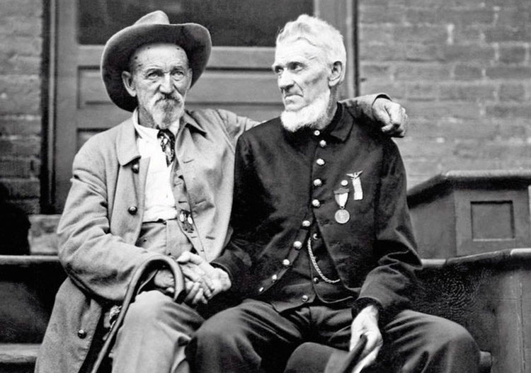 Después de la Guerra Civil, algunos veteranos encontraron la posibilidad de dejar atrás el pasado, algunos antiguos enemigos se dan la mano como amigos