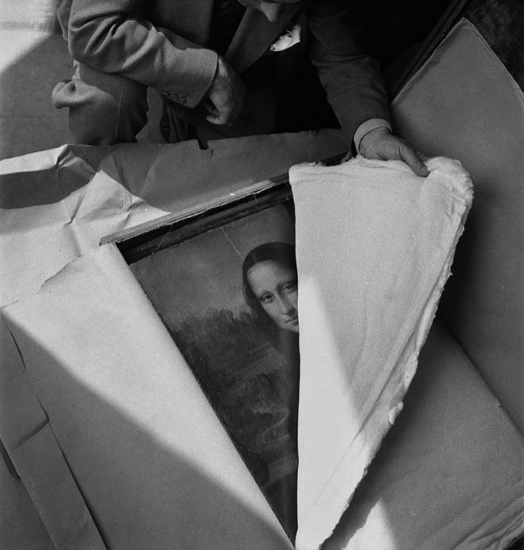 La Mona Lisa desempaquetada después de pasar la Segunda Guerra Mundial en la clandestinidad, 1945